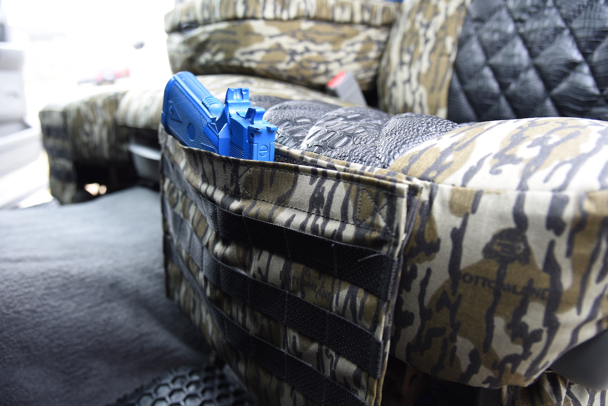 From rifles to rangefinders, keep your gear close. Once you’ve picked your fabric and vehicle, add custom storage pockets — built tough and sewn in to match.