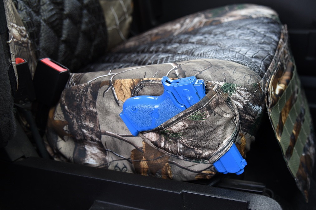 Pistol Holster™ – Sewn into the front driver’s seat; fits a variety of handguns, pepper spray, or a cellphone.